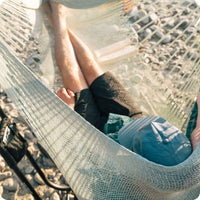 Each of our hammocks and hanging chairs is 100% woven by hand using our specially designed Weightless Weave™ to cradle you in cloudlike comfort. This free-flowing weave contours to your body to ensure a perfect hang every time you get in your hammock. We’ve also engineered our hammocks to be especially stable so you can nap securely (no wobbling or flipping in these beauties!).